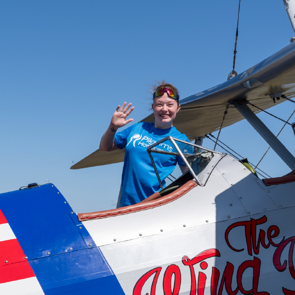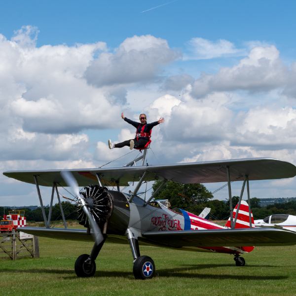 Join Pilgrims Hospices for the ultimate adrenaline rush with our Wing Walking Challenge! Strapped to the wing of a vintage Boeing Stearman biplane, you’ll soar through the skies at up to 120mph – an experience you’ll be sure to never forget.