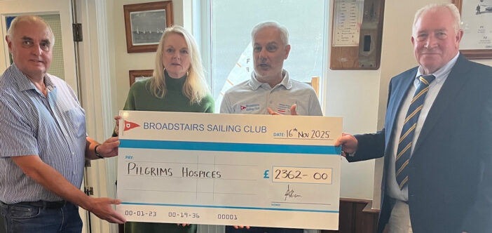 The cheque was presented to Karen Kenward, Community Fundraising Manager at Pilgrims Hospice Thanet, by Michael Todd, Vice Commodore of Broadstairs Sailing Club.
