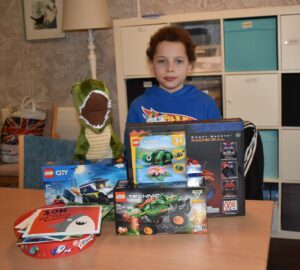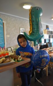 Lorenzo, his brother Luca (10), and cousin Mischa (2) gathered at the hospice alongside their dad Rob, grandparents Claire and Gero, aunties and uncles, and close family members from Herne Bay and Whitstable. The Pilgrims catering team prepared a lovely traditional birthday tea, complete with freshly made sandwiches, colourful jelly and a special birthday cake, creating a warm and joyful party atmosphere. Lorenzo excitedly opened presents, including dinosaurs, Lego and plenty of sweets – some of his favourite things.