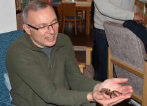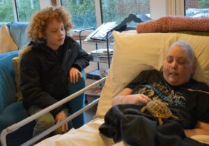 To ensure Rosanna could be at the heart of the celebration, nurses carefully brought her bed into the hospice therapy centre, creating space for everyone to be together. After lunch, a special surprise arrived courtesy of Creepy Claws Animal Encounters in Teynham, who kindly volunteered their time to bring along a selection of fascinating creatures.
